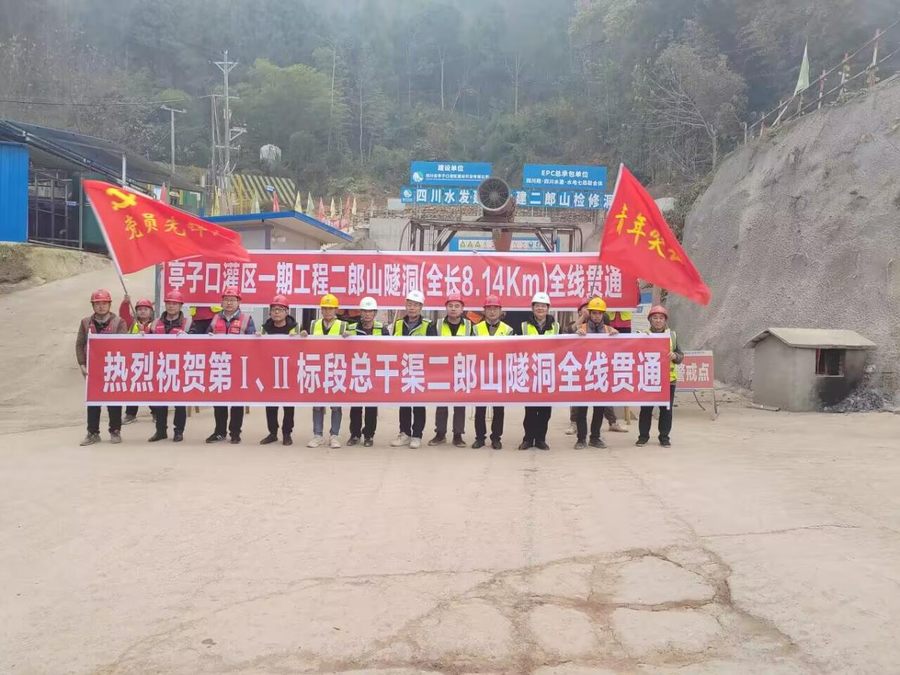2024年1月7日,由建設公司承建的亭子口灌區(qū)一期工程Ⅰ標二郎山隧洞順利貫通。二郎山隧洞全長8140.73米,建設公司承建的二郎山隧洞部分總長7368.45米,圍巖類別多為Ⅲ、Ⅳ、V類。作為Ⅰ標段總干渠第二長的隧洞,它的全面貫通標志著進入2024年,施工高峰正式由開挖轉序為襯砌,為順利邁向下一個施工階段,打開建設新局面開好頭、起好步。